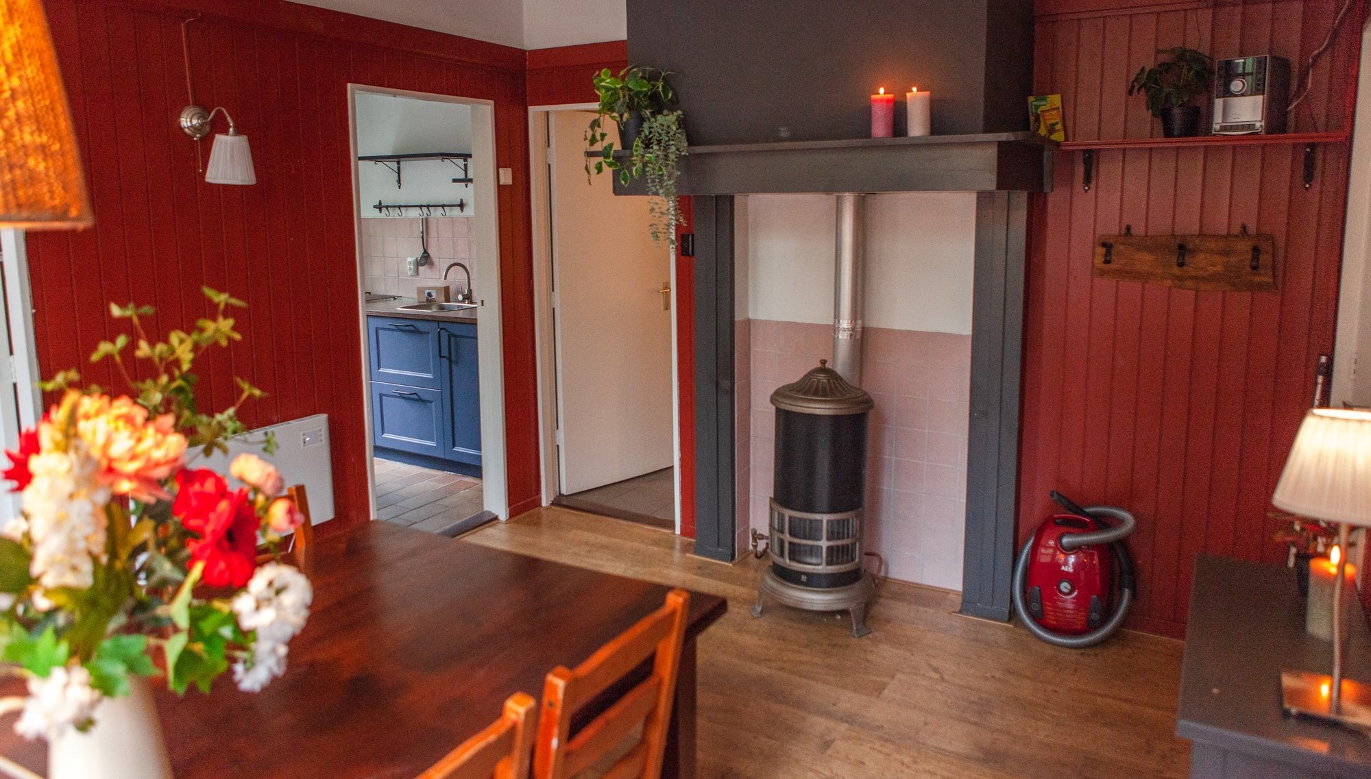 Im Inneren finden Sie ein Wohnzimmer mit einem großen Esstisch und Stühlen. Es gibt drei Schlafzimmer: eines mit einem Doppelbett und zwei Zimmer mit jeweils einem Etagenbett und einem Einzelbett. Die Küche ist komplett ausgestattet und das Badezimmer wurde kürzlich renoviert. Hunde sind in unserem Bauernhaus herzlich willkommen.