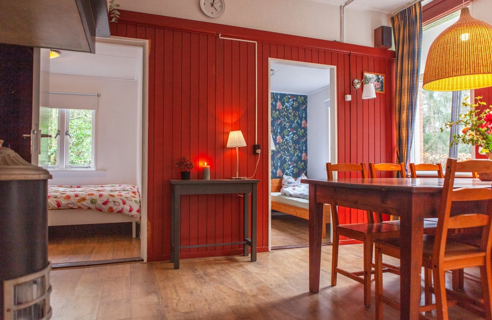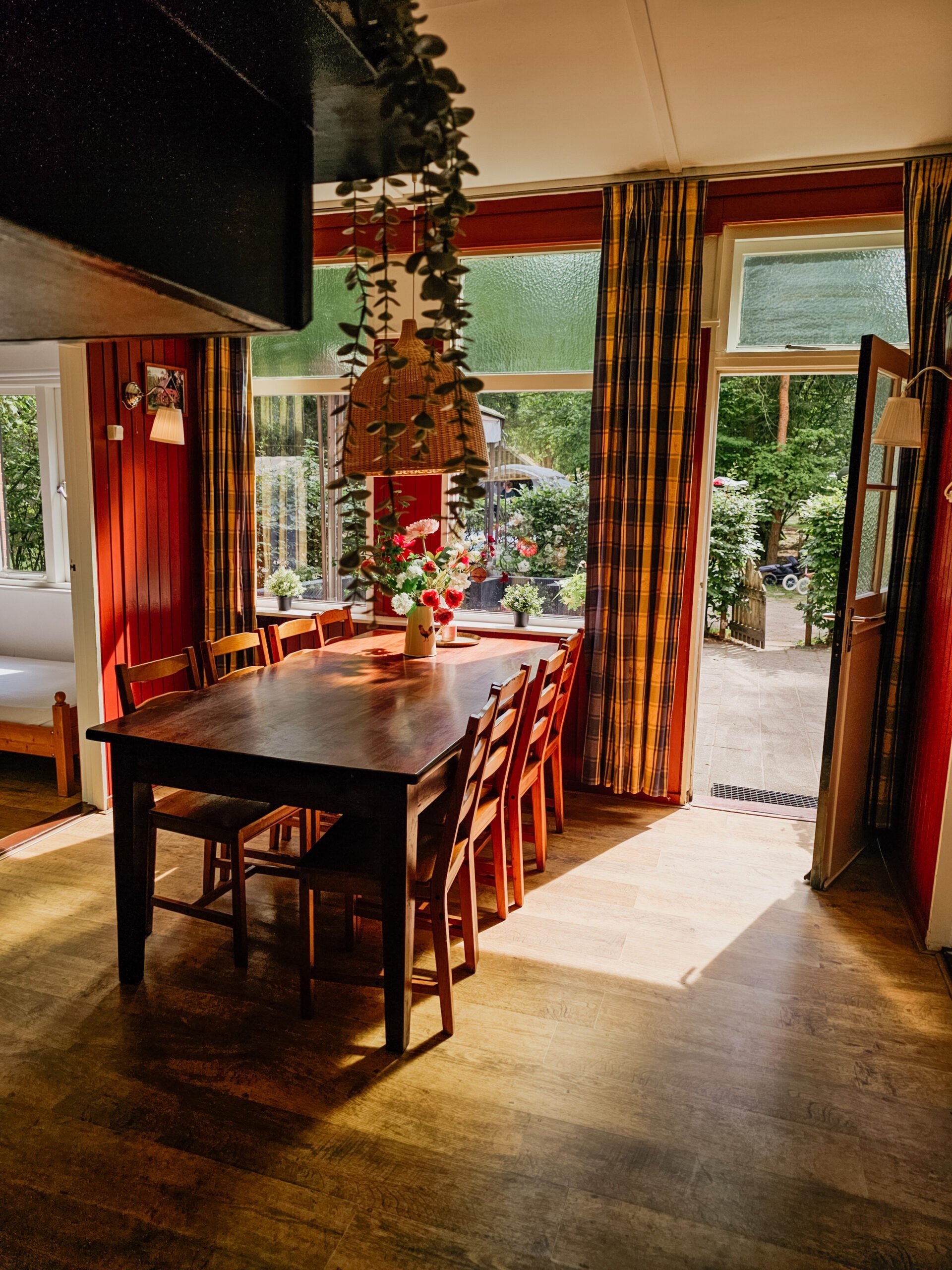 Draußen erwartet Sie eine sonnige Terrasse mit Lounge-Set, ein wunderbarer Ort, um gemeinsam zu essen, etwas zu trinken oder einfach nur die Ruhe zu genießen. Und mit etwas Glück hüpft sogar ein Eichhörnchen vorbei. Hinter dem Bauernhof befindet sich ein Spielplatz mit Schaukel und Sandkasten, perfekt für Kinder. Da der Bauernhof zwischen den Campingplätzen liegt, finden sie schnell neue Freunde!